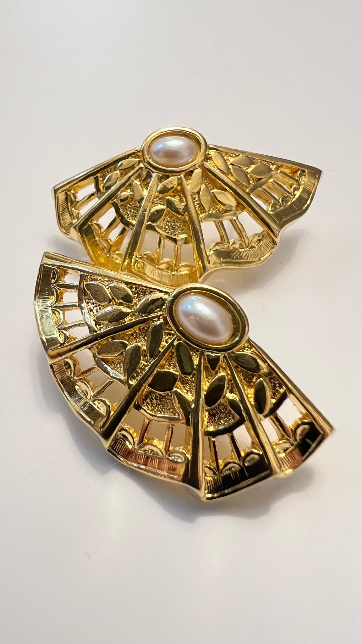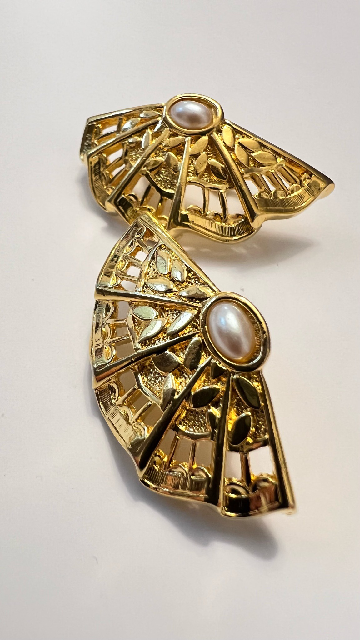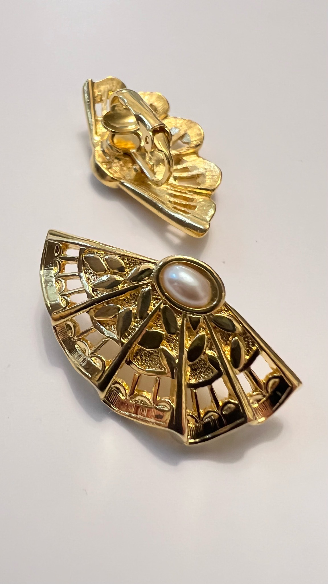 Очень красивые клипсы с жемчужной (имитация) вставкой от американской компании Avon в виде ажурного веера привезены из США