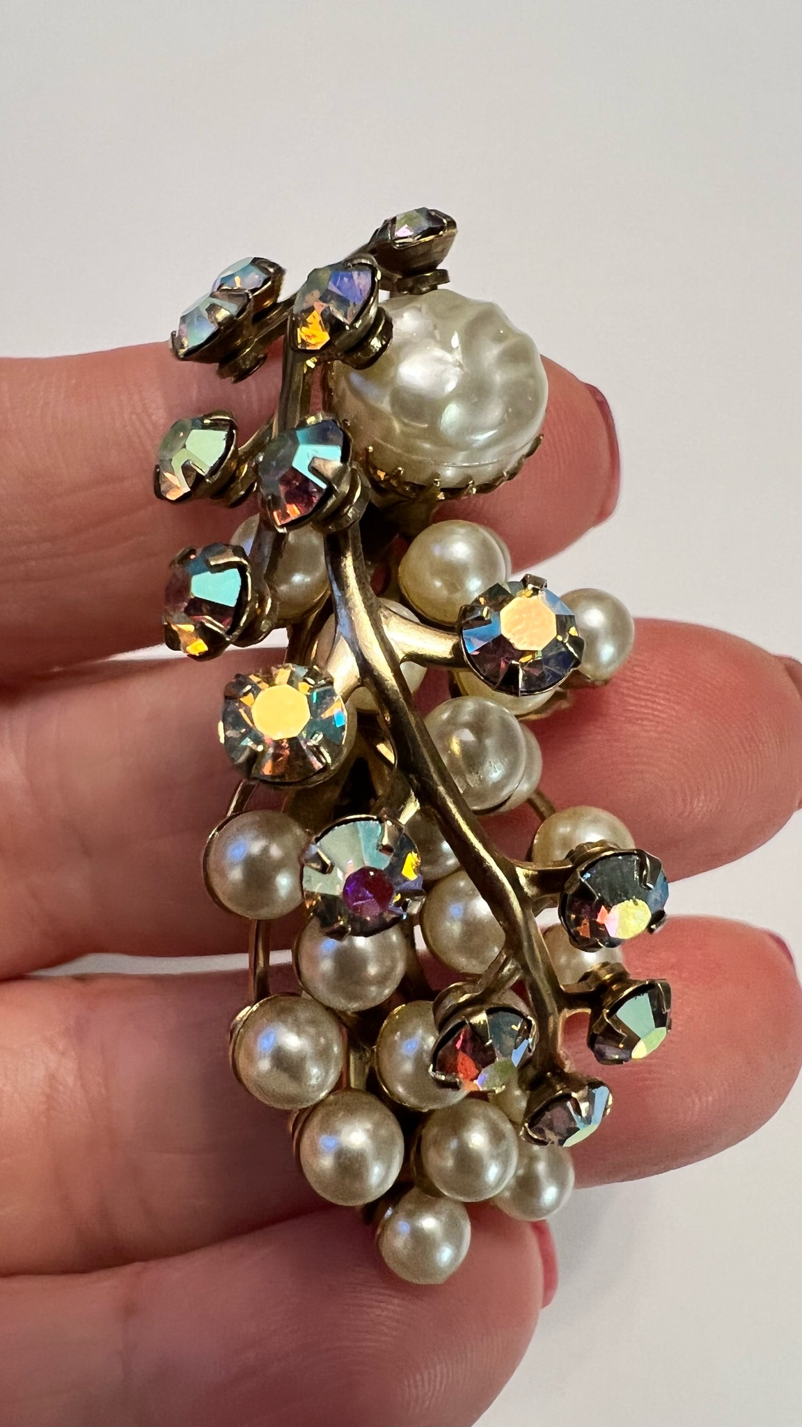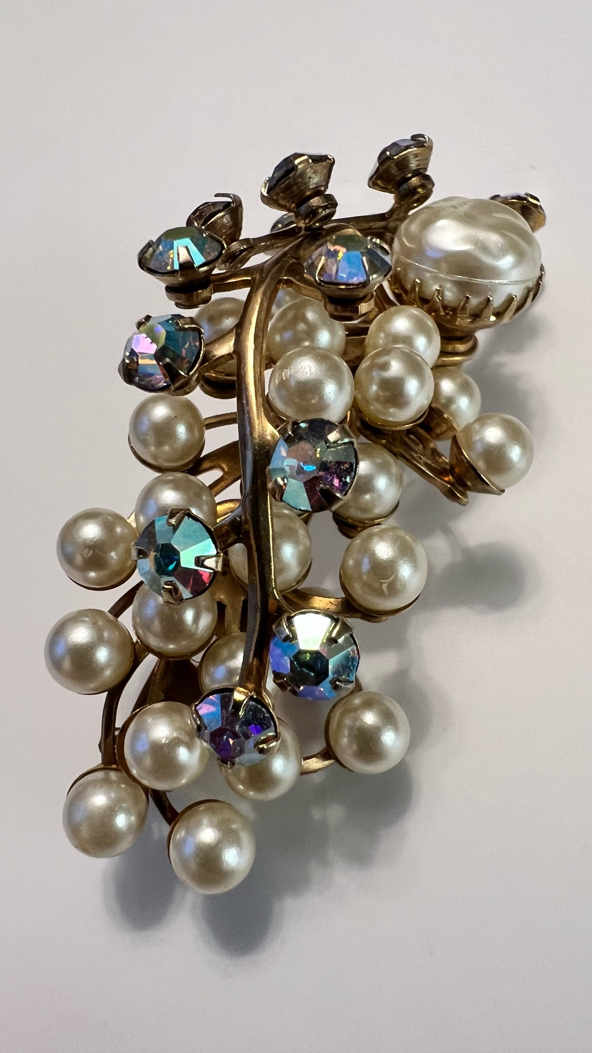 Красивая легкая винтажная брошь с имитацией жемчуга и кристаллами Северное Сияние привезена из США