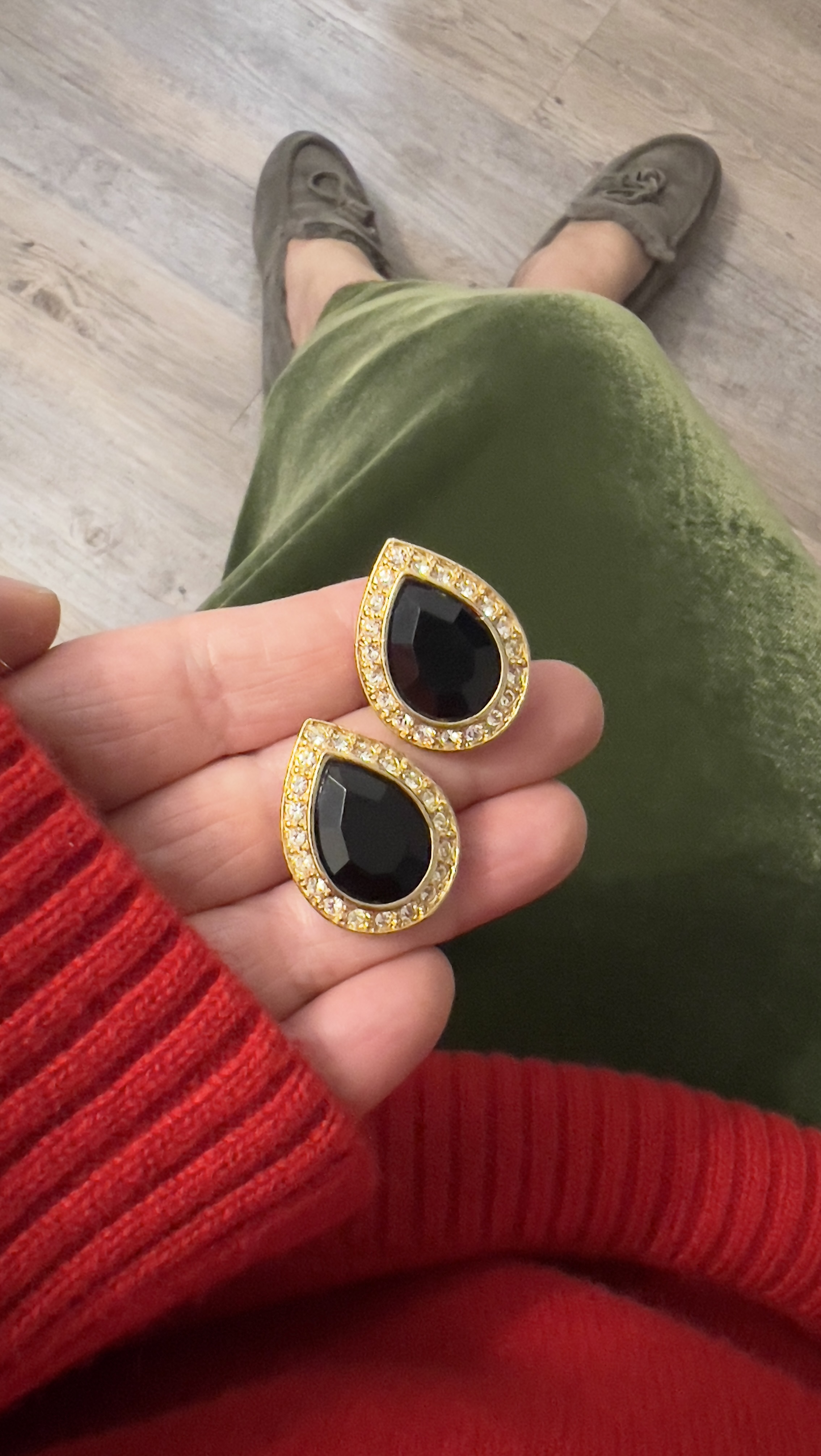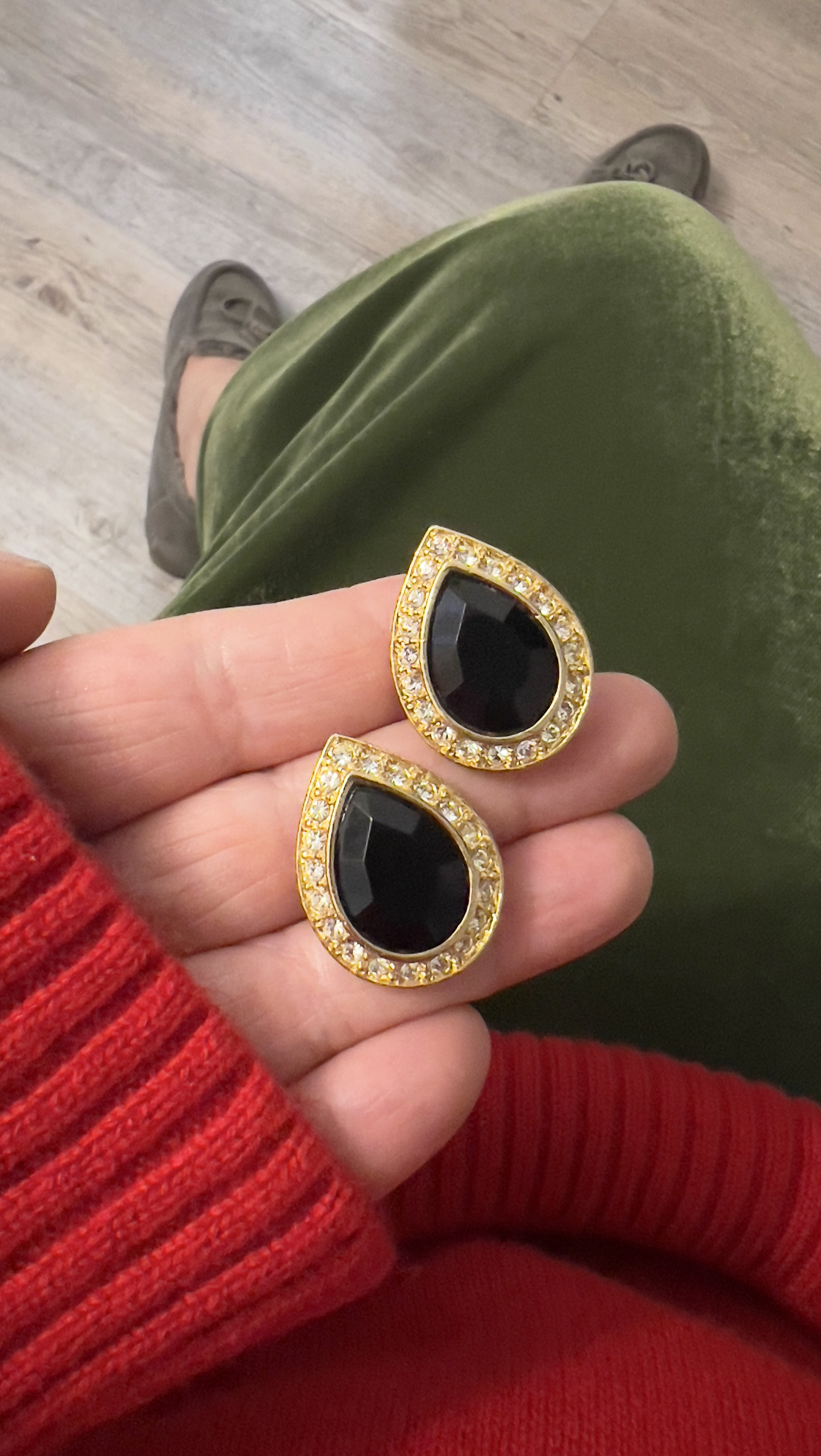 Клипсы с кристаллами и черной вставкой